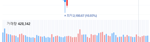 캔들 밑부분을 보시면 거래량이 나타납니다.