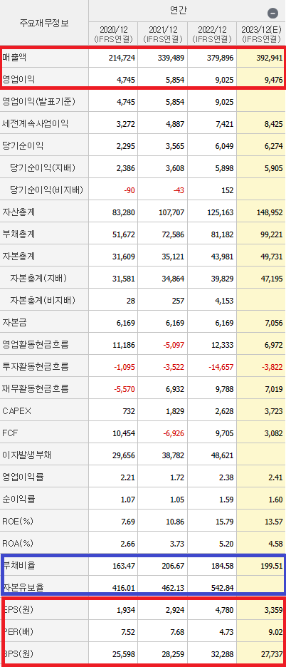 인한 기대감 상승과 매년 매출액, 영업이익의
